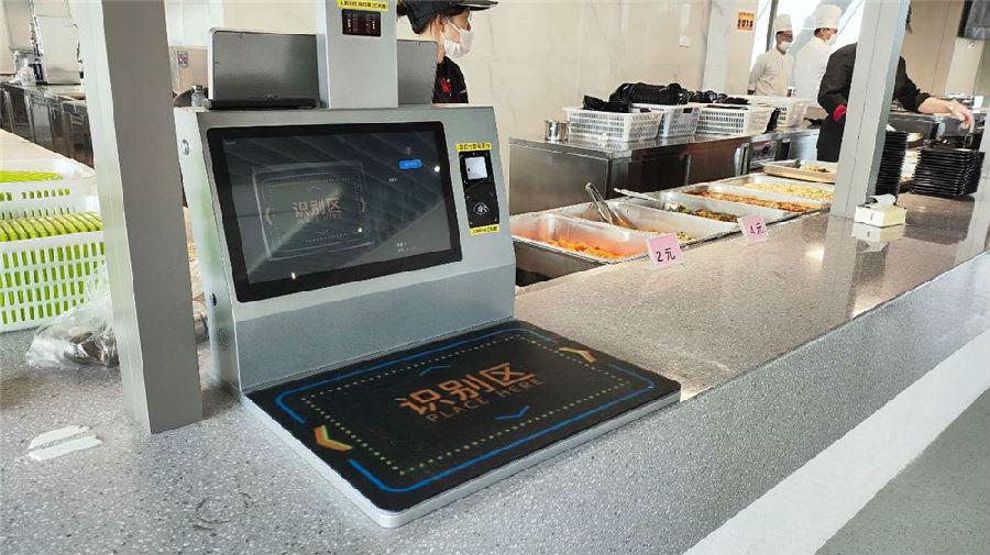 2、根据食堂内布局及空间、费用问题,云勤通智慧食堂应用桌面式AI智能视觉结算终端,当用户自助取餐后,将菜品放置视觉结算收银机识别区,顶部的Ai摄像头将会快速识别菜品并报价,实现快速识别菜品、自动结算、数据分析等功能。